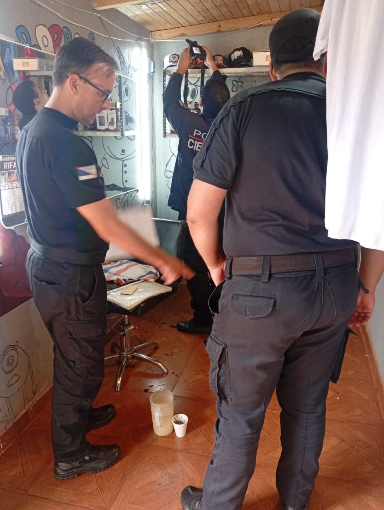 Pero su recorrido de violencia y sangre comenzó antes de matar a la mujer, ya que la primera parada del femicida fue en la barbería de su hijastro, en calle Pasaje Drake 675, donde sin mediar palabras disparó dos veces, aunque milagrosamente el joven esquivó a la muerte y escapó corriendo.