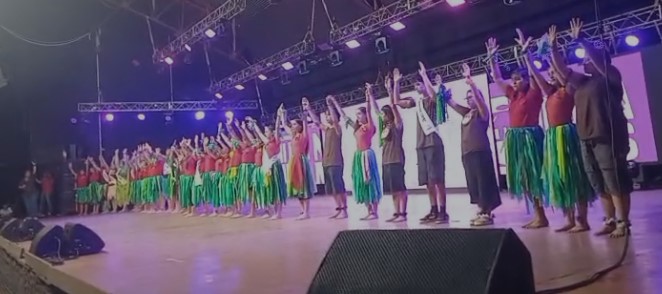 La actuación de los chicos fue acompañada por un clamor: “Ni una menos”, exhibido en pantalla gigante.