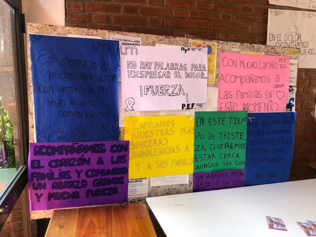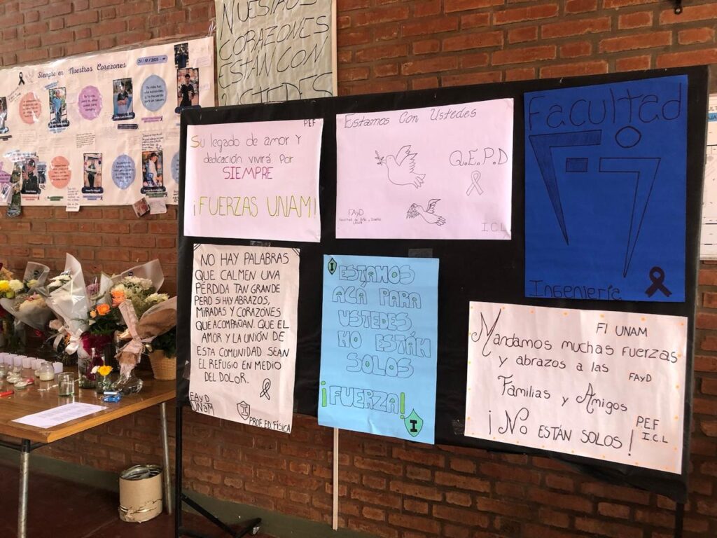 Así, los pasillos de las facultades se llenaron de altares, velas, flores y afiches contando el dolor, la tristeza y el acompañamiento a las familias afectadas por tan terrible tragedia.
