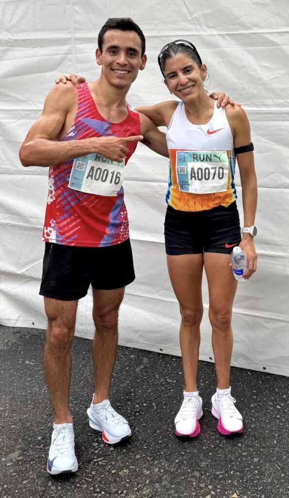También compartió una foto con la atleta olímpica Daiana Ocampo, ganadora de los 10K en la categoría mujeres, quien le regaló un par de zapatillas de alta tecnología.