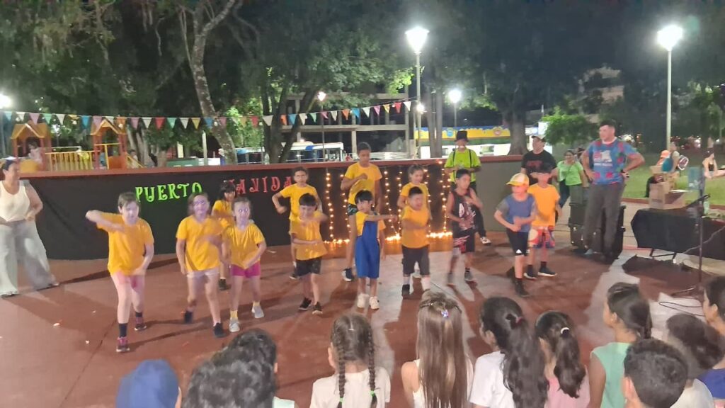 Durante el último show del año, Gurises Felices fue ovacionado por los chicos que el sábado se dieron cita en la plaza 9 de Julio de la localidad de Puerto Rico durante la festividad de “Puerto Navidad”.