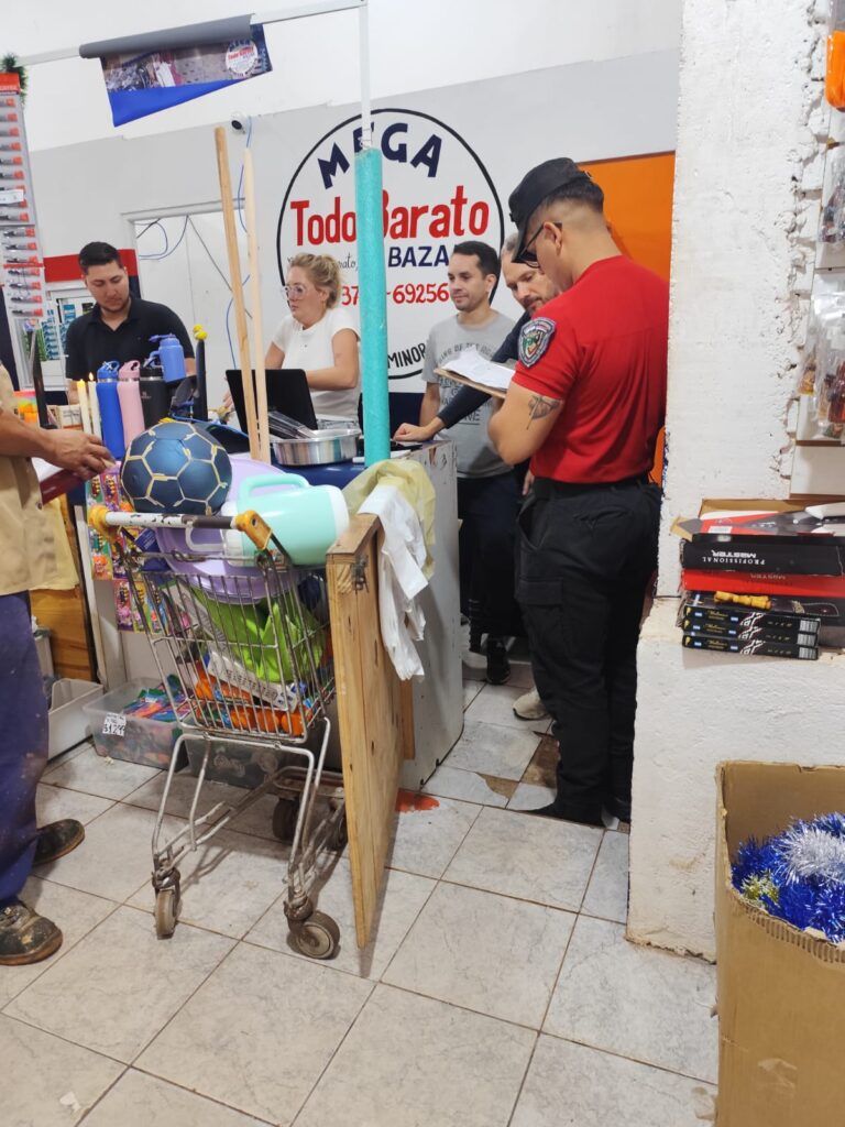 Personal de la División Bomberos de la Policía recorrió diferentes comercios de Oberá para controlar que no se venda pirotecnia sonora, atento a la ordenanza que prohíbe la comercialización y tenencia de ese tipo de “cohetes”.