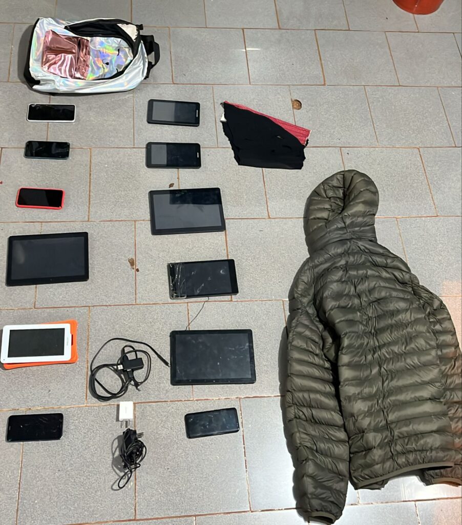 Fue así que se procedió a la detención de Gonzalo Damián Ocampo (27), quien tenía en su poder una mochila llena de celulares, tabletas y otros elementos de valor.