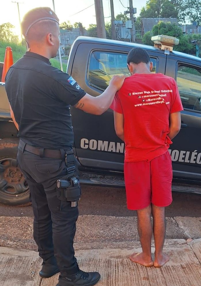 Esta tarde, una patrulla del Comando Norte realizaba recorridas por el barrio Caballeriza y a la altura de calle Río Salado se cruzó con un joven que, al ver al móvil, dio vuelta y salió corriendo. Tras algunos metros de veloz carrera, los uniformados alcanzaron al sospechoso y lo detuvieron.