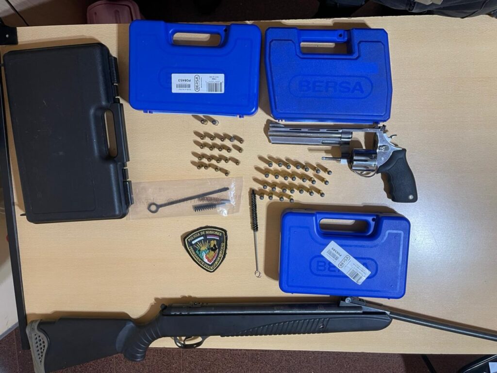 Tras la denuncia, cumpliendo con la orden judicial, personal de la Unidad Regional II allanó ayer el domicilio del implicado, en cuyo poder encontraron un revólver calibre 357 Magnum y 25 municiones. También hallaron municiones para otro tipo de armas y un rifle de aire comprimido.