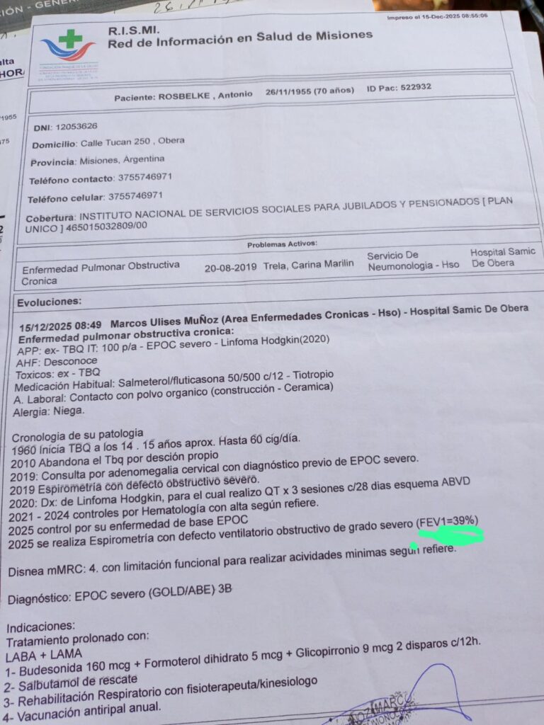 Pedido solidario para un jubilado obereño con EPOC que necesita una silla de ruedas