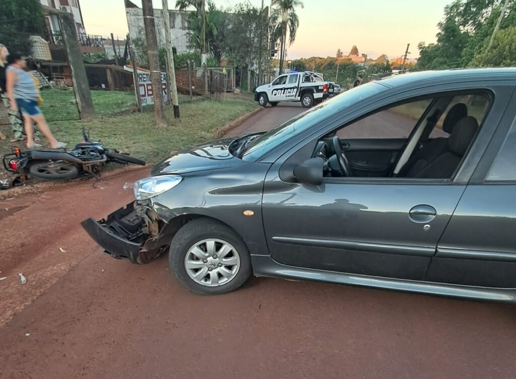 Un motociclista resultó lesionado tras un choque frontal con un coche conducido por una mujer. El hecho se registró alrededor de las 19 de este viernes en la intersección del Apóstoles Norte y Carhué, en Oberá.