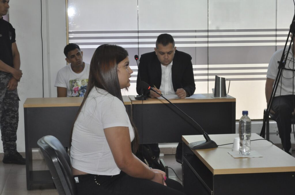 La víctima y de fondo del acusado, con su defensor