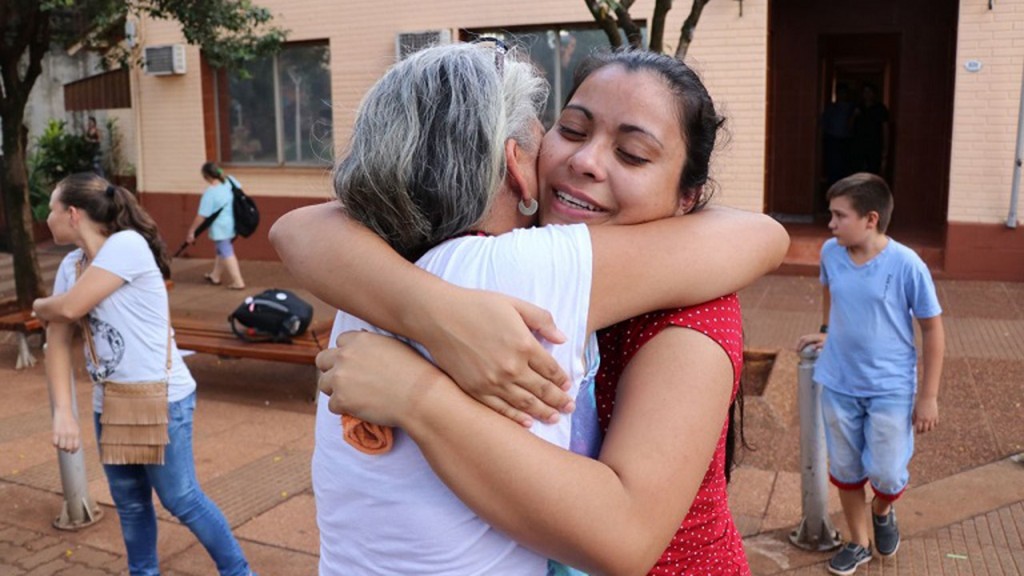 Gabriela Stefani, asesora jurídica del Ministerio de DDHH (hoy en la Comisión de Buenas Prácticas en Contexto de Encierro), evidenció una particular cercanía con Victoria Aguirre, a quien saludaba con besos y abrazos en cada audiencia.