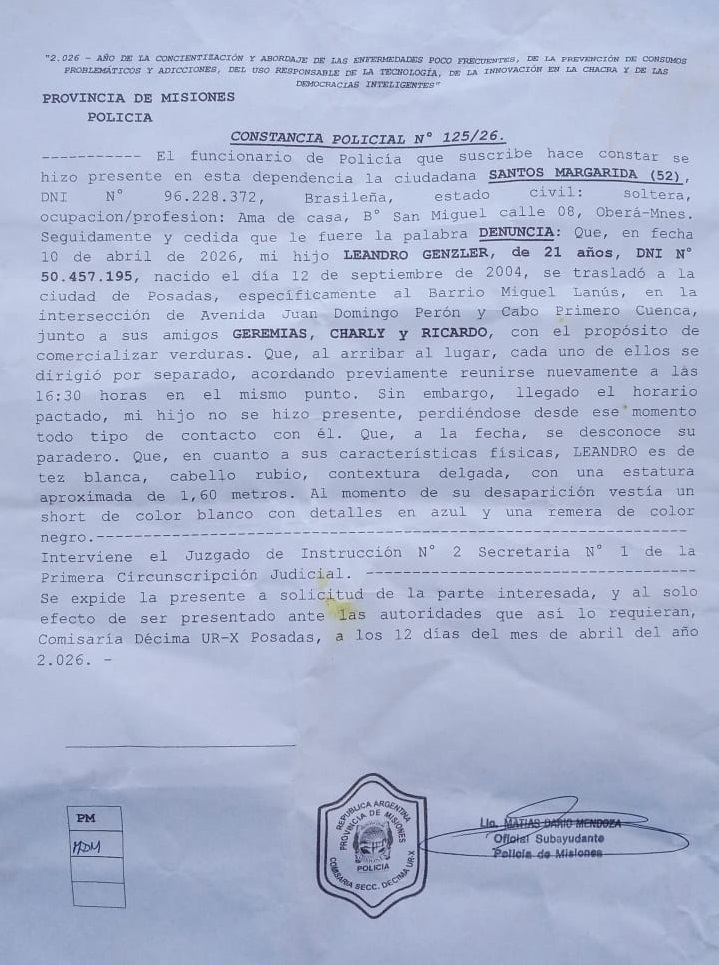 Alarma por un obereño que fue trabajar a Posadas y desapareció