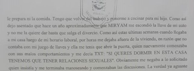“Si querés dormir en esta casa, tenemos que tener relaciones sexuales”, citó a su ex en la denuncia de la semana pasada.